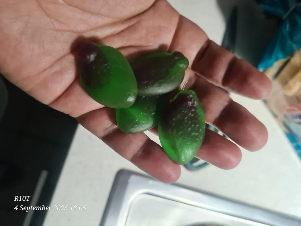 Sour Feijoa. A classic NZ fav, it is an acquired taste you either hate them or love them